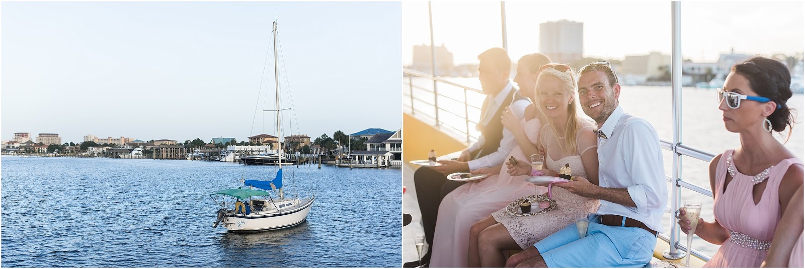 A few weeks ago I was blessed to photograph Jessica and Derek’s wedding in Fort Walton/Destin, Florida….and oh, do I want to go back!! The sun, the perfect (not too hot) white sand, the ocean waves crashing against the shore….the feeling of the sand squishing between my toes…and a wedding, what more could I have asked for?! I brought my friend and second shooter Olivia with me to relish in the rays and keep me company during our free time….and of course work like crazy when we were shooting (thanks so much!!). We started our adventure with little to no sleep, because we shot a wedding on Friday night and went straight to Indy afterwards to fly to Florida.  Unfortunately, there wasn’t a direct flight, so it took a bit longer to get there (and back, but that’s another story) than we wanted…but we made it, camera gear and all! We were able to celebrate with Jessica and Derek at their rehearsal that night, and then were up bright and early to photograph their Sunday wedding! There were some hiccups during the day, but Jessica was such a calm, gentle spirited bride (I need to learn from her!!) and didn’t let anything bother her. Jessica and Derek exchanged vows on the beach and then we headed out for a little ocean cruise. We ended the night back at the hotel to celebrate and had the best pizza ever….seriously, the pizza was the bomb. The next day, I spent a little more time with Jessica and Derek taking pictures at the beach and around town.  Derek treated Olivia and I to smoothies and dinner. He even tried to convince us to go zip lining, but I left that one to them (I won’t say whose face looked scared when coming off the zipline…hmmmderekhhhmm).  So, grab some coffee and relax…and try to soak up the sun from their images!!